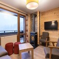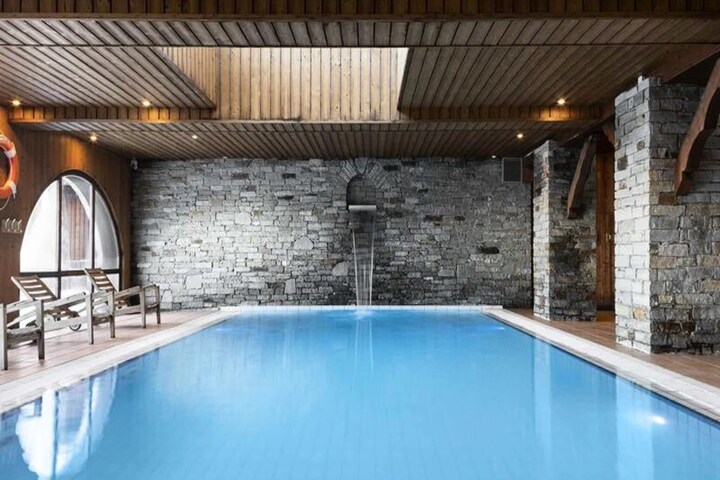 The residence combines luxury and comfort, with apartments designed to accommodate groups of all sizes, from couples to families of up to 15 people. Each apartment is thoughtfully decorated, featuring a fully equipped kitchen, cozy living spaces, and even a whirlpool bath for ultimate relaxation. After a day on the slopes, unwind in the wellness center, complete with a swimming pool, spa, sauna, and fitness room. Whether you’re soaking in the whirlpool or enjoying a raclette dinner in the comfort of your apartment, every detail is crafted for your enjoyment.