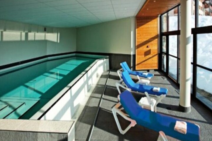 The residence itself boasts a heated indoor pool, a relaxation and wellness center with a sauna, jacuzzi, hammam, and experience shower—perfect for unwinding after an active day. Shops and amenities are just 100 meters away, while the property also offers ski lockers and underground parking for added convenience.