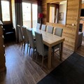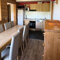 Inside, the 87 m² apartment comfortably accommodates up to 10 guests across five thoughtfully designed rooms. The living room, with its cozy electric fireplace and flat-screen TV, is perfect for unwinding after a day outdoors. The open-plan kitchen is fully equipped with modern appliances, including a ceramic hob, oven, microwave, and dishwasher, making it easy to prepare hearty meals for family and friends. Four inviting bedrooms, including one with an en-suite shower, offer restful spaces, while two additional bathrooms and a separate toilet ensure convenience for larger groups.