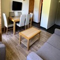 The apartment spans 53m² and accommodates up to six guests, making it ideal for families or small groups. The living room features a comfortable double sofa bed and a flat-screen TV, while the bedroom boasts a double bed and an en-suite shower for added privacy. The sleeping alcove with bunk beds is perfect for children or friends. The open-plan kitchen is fully equipped with a ceramic hob, dishwasher, oven, microwave, and refrigerator with freezer, ensuring you can prepare hearty meals after a day of adventure. The bathroom includes a bathtub and hairdryer, while two separate toilets add convenience. Bed linen, towels, and duvets are provided, ensuring a hassle-free stay.