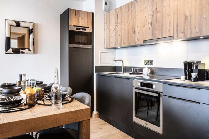 In the heart of the French Alps, where snow-dusted peaks meet serene alpine charm, the Terresens Le Snoroc Residence invites you to experience mountain living at its finest. Just steps from the Fornelet gondola lift, this modern retreat offers unparalleled ski-in/ski-out access, whisking you to the summit and Prajourdan ski area in mere minutes. Whether you're here for winter adventures or summer tranquility, the breathtaking views from your private balcony or terrace will leave you inspired and refreshed. \n\nDesigned with comfort and style in mind, the residence boasts a range of apartments accommodating up to 10 guests. Each space blends contemporary elegance with a cozy mountain aesthetic, featuring fully equipped kitchens, plush furnishings, and thoughtful touches for a relaxing stay. At the heart of the property lies a wellness area, offering a heated indoor pool, sauna, hammam, jacuzzi, and sensory shower—perfect for unwinding after a day on the slopes or trails. Families and friends will also enjoy the playroom with billiards, foosball, and games, as well as the tapas bar serving local delicacies crafted by renowned chefs. \n\nConveniently located, the residence is just a short walk from shops, restaurants, and bars, ensuring everything you need is within easy reach. In summer, explore nearby hiking trails, alpine meadows, and panoramic vistas, while winter brings world-class skiing and snowboarding opportunities. With its blend of luxury, comfort, and accessibility, Terresens Le Snoroc Residence is the ultimate destination for creating unforgettable memories in the mountains.