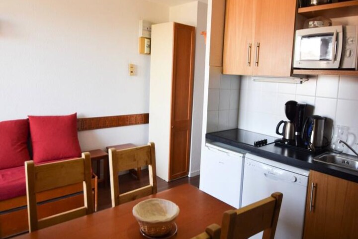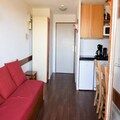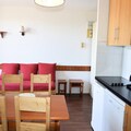 This cozy 31m² apartment is thoughtfully designed to accommodate up to five guests. The living room features a dining area and two pull-out beds, while the bedroom offers two comfortable single beds. A sleeping alcove with an additional single bed provides extra flexibility. The well-equipped kitchen includes ceramic hobs, a refrigerator, microwave, and dishwasher, making it easy to prepare meals after a day on the slopes. Modern amenities such as WiFi, a flat-screen TV, and a private ski locker enhance your stay, while the north-facing balcony offers stunning views of the resort and valley below.