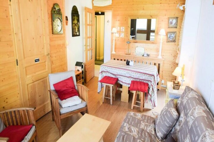 High above the stunning Tarentaise Valley, this bright and inviting apartment offers a front-row seat to the majestic Mont Blanc and surrounding alpine scenery. Perfectly situated in the heart of Plagne Centre, it provides easy access to the slopes, with the possibility to ski back to the residence after a day of adventure. Whether you're here for winter sports or summer hikes, the breathtaking views from the two balconies will make every moment unforgettable. The residence is just a short walk from shops and a lively shopping arcade, ensuring convenience and entertainment are always within reach. \n\nDesigned for up to five guests, this cozy two-room apartment combines comfort and practicality. The living room features a double sofa bed and a TV for relaxing evenings, while the bedroom offers bunk beds and a single bed, making it ideal for families or small groups. The separate kitchen is fully equipped with modern appliances, including a refrigerator, dishwasher, oven, and microwave, so you can prepare meals with ease. A bathroom with a bathtub and a separate WC add to the convenience, while the ski locker on level 1 ensures hassle-free storage for your gear. \n\nPlagne Centre is a hub of activity, with ski lifts and slopes just 200 meters away, making it a dream destination for snow enthusiasts. In summer, the area transforms into a paradise for hikers and nature lovers, with trails that wind through lush landscapes and offer panoramic views of the valley. The nearby shopping arcade and restaurants provide a taste of local culture and cuisine, adding to the charm of this alpine retreat. \n\nWhether you're seeking thrilling adventures or serene moments surrounded by nature, this apartment is your gateway to the best of the French Alps. Let the beauty of Mont Blanc and the vibrant energy of Plagne Centre create memories to last a lifetime.