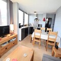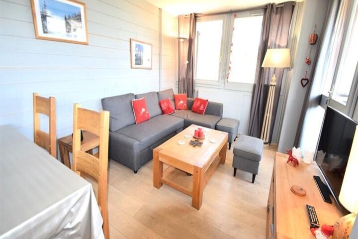High above the breathtaking Tarentaise Valley, this beautifully renovated apartment offers a serene alpine retreat with panoramic views of Mont Blanc and the surrounding peaks. The residence is perfectly situated just 200 meters from the slopes, allowing you to ski back to the building after a day on the pristine runs of La Plagne. Whether you’re seeking adventure or relaxation, this property promises an unforgettable stay in the heart of the French Alps. \n\nStep inside this spacious 61 m² apartment, thoughtfully designed to accommodate up to seven guests. The bright living area features a comfortable sofa bed, a dining space, and a fully equipped American-style kitchen with modern appliances including a ceramic hob, dishwasher, oven, microwave, and two refrigerators. The sleeping arrangements include a cozy double bedroom and a second bedroom with two sets of bunk beds, making it ideal for families or groups of friends. Two sleek shower rooms, a separate WC, and convenient amenities like a washing machine and Wi-Fi ensure your stay is as comfortable as it is stylish. The large balcony invites you to unwind with a glass of wine while soaking in the majestic views of Mont Blanc and the valley below. \n\nThe residence is just a short walk from local shops and a vibrant shopping arcade, offering easy access to everything you need during your stay. Outdoor parking is available nearby, and the property includes two ski lockers for your convenience. Beyond skiing, the area transforms into a summer paradise with hiking trails, mountain biking routes, and stunning vistas that will captivate nature lovers and adventure seekers alike. \n\nWhether you’re chasing powder or exploring alpine meadows, this apartment is your gateway to the wonders of La Plagne. Book your stay now and create lasting memories in one of France’s most iconic mountain destinations.