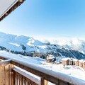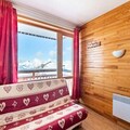 High above the Tarentaise Valley, where snow-dusted peaks meet serene alpine charm, this cozy studio in the LE PLEIN SUD residence offers a tranquil retreat for couples seeking a mountain getaway. With direct access to the slopes, you can step out and embrace the thrill of skiing without delay. The residence’s quiet ambiance and proximity to nature make it a perfect choice for those looking to unwind amidst breathtaking scenery. From your north-facing balcony, soak in the crisp mountain air and enjoy uninterrupted views of the majestic alpine landscape. \n\nThe studio, thoughtfully designed for two guests, features a comfortable double sofa bed, a compact yet functional kitchenette equipped with electric hobs, a microwave, and a refrigerator, as well as a private bathroom with a shower and WC. The ski locker on the ground floor ensures your gear is always ready for the next adventure. Modern conveniences like WiFi and vinyl flooring add to the comfort of your stay, while the residence’s free outdoor parking and shuttle service to the village center make exploring the area effortless. \n\nLocated just 700 meters from shops and a sports store, you’ll find everything you need within easy reach. The free shuttle service runs every 15 minutes, connecting you to the vibrant village center where you can discover local restaurants, après-ski activities, and charming boutiques. Whether you’re here for the exhilarating slopes or the peaceful summer trails, the surrounding area offers endless opportunities for outdoor adventures. \n\nChoose LE PLEIN SUD for its unbeatable location at the foot of the slopes, its quiet and welcoming atmosphere, and the promise of unforgettable alpine memories. Whether it’s the thrill of skiing or the tranquility of the mountains, this studio is your gateway to the best of Plagne Villages.