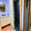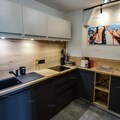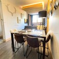 Step inside to discover a thoughtfully designed space featuring a fully equipped kitchen with modern appliances, including a Nespresso Magimix coffee machine, ceramic hobs, and a dishwasher. The living room invites you to unwind in the cozy lounge area or enjoy meals in the dining space. The apartment boasts two elegant bedrooms: one with a luxurious double bed and en-suite shower room, and another with two single beds that can be joined together. Additionally, a charming cabin bedroom with bunk beds offers a cozy nook for children or extra guests. With two sleek walk-in showers, a separate WC, a washing machine, and a dryer, every detail has been considered to ensure your stay is as comfortable as possible.