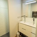 Elevator, Living room(TV), Kitchen(electric kettle, toaster, coffee machine, oven, dishwasher, dishes and cutlery), bedroom(bunk bed), bedroom(double bed), bedroom(single bed, single bed), bathroom(shower, washbasin), bathroom(shower, washbasin), washing machine, heating, hairdryer, plancha grill