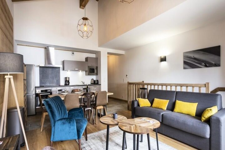 With breathtaking, uninterrupted views of the pristine slopes, the Terresens Le Diamant des Neiges residence in La Plagne 1800 offers a truly exceptional alpine retreat. Perfectly positioned for ski enthusiasts, this charming residence boasts ski-in/ski-out access, placing you just moments from the French Ski School, the children's snow garden, and a variety of local shops. Whether you're a seasoned skier or a family seeking snowy adventures, this location ensures convenience and unforgettable experiences. \n\nEach of the ten thoughtfully designed apartments exudes mountain charm, blending rustic elegance with modern comforts. Warm wood accents, cozy furnishings, and high-end amenities create a welcoming atmosphere ideal for relaxing after a day on the slopes. The apartments feature spacious living areas, a fully equipped open-plan kitchen, and comfortable sleeping arrangements, including a sofa bed for two, a double bedroom, and two twin bedrooms. Each bedroom is complemented by its own bathroom or shower room, ensuring privacy and convenience for all guests.\n\nBeyond skiing, La Plagne 1800 offers a wealth of winter activities, from snowshoeing and cross-country skiing to ice skating and sledding. For the adventurous, speed riding and ski touring provide thrilling ways to explore the alpine landscape. After a day of excitement, unwind in the comfort of your apartment or take in the serene mountain views from your balcony.\n\nWith included amenities such as WiFi, bed linens, towels, and covered parking, as well as optional extras like pet-friendly accommodations and baby kits, this residence caters to every need. Whether you're drawn by the allure of the slopes or the charm of the surrounding village, Terresens Le Diamant des Neiges promises a memorable stay in the heart of the French Alps.
