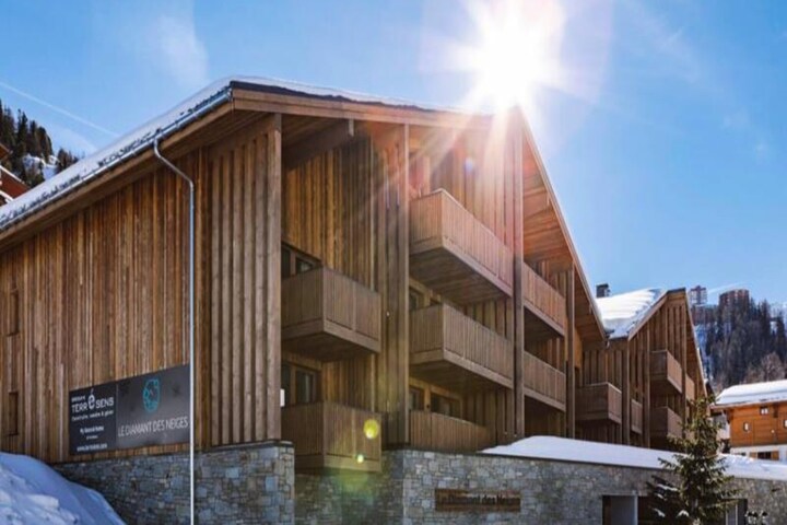 With breathtaking, uninterrupted views of the pristine slopes, the Terresens Le Diamant des Neiges residence in La Plagne 1800 offers a truly unforgettable alpine getaway. Situated in the heart of this charming ski village, the residence boasts ski-in/ski-out access, ensuring that your days on the mountain begin and end with ease. Whether you're a seasoned skier or a first-time visitor, the proximity to the French Ski School, the children's snow garden, and local shops makes this the perfect base for your winter adventures. \n\nEach of the ten thoughtfully designed apartments combines the rustic charm of mountain living with modern, high-end amenities. Warm wooden interiors, cozy furnishings, and a welcoming atmosphere create the perfect retreat after a day in the snow. The apartments feature a living room with a sofa bed, a fully equipped kitchen, a bedroom with a double bed, a cabin with bunk beds, and two shower rooms. A private balcony invites you to soak in the crisp alpine air while admiring the stunning scenery. \n\nBeyond skiing, La Plagne 1800 offers a wealth of activities to enjoy, from snowshoeing and cross-country skiing to ice skating and sledding. For the adventurous, speed riding and ski touring provide thrilling ways to explore the snowy landscape. In every season, the beauty of the Tarentaise Valley and the surrounding peaks will captivate you. \n\nWith included amenities such as WiFi, bed linen, towels, and covered parking, as well as pet-friendly options and baby kits available on request, this residence ensures a seamless and comfortable stay. Whether you're here for the exhilaration of the slopes or the tranquility of the mountains, Terresens Le Diamant des Neiges promises a memorable escape in the heart of the French Alps.