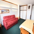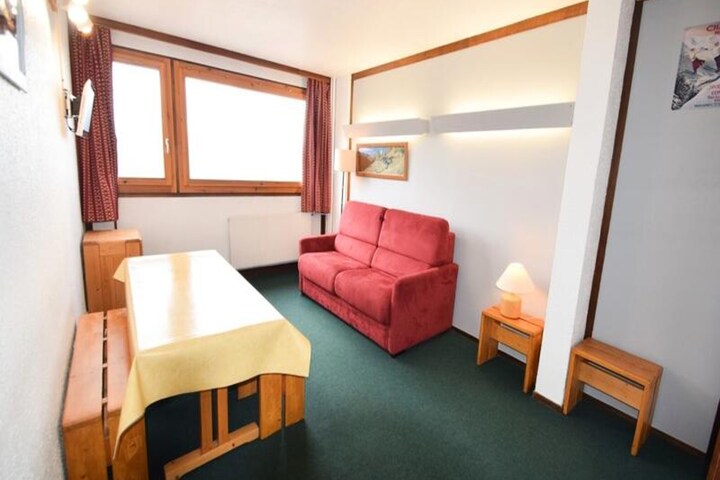 High above the Tarentaise Valley, this charming apartment in La Meije Residence offers an unforgettable alpine escape with breathtaking views of Mont Blanc. Perfectly situated in Plagne Centre, it combines the convenience of ski-in/ski-out access with proximity to the shopping arcade and free outdoor parking, making it an ideal base for your mountain adventures. Whether you're here for the snow-covered slopes or the lush summer trails, this residence invites you to immerse yourself in the beauty of the French Alps. \n\nInside, the apartment is thoughtfully designed to accommodate up to five guests across its 45m² layout. The separate kitchen is equipped with modern amenities, including electric hobs, a combination oven, refrigerator, dishwasher, and coffee maker, ensuring you can prepare meals with ease. The living room features a comfortable double sofa bed and a TV, while the bedroom offers a fold-down double bed and a single bed, providing flexible sleeping arrangements. The bathroom includes a bathtub for relaxing after a day of activities, and the separate WC adds convenience. With cozy bedding and a mix of carpet and vinyl flooring, the apartment guarantees a warm and welcoming atmosphere. \n\nStep outside and you'll find yourself at the foot of the slopes, ready to explore the world-class Paradiski domain. The nearby shopping arcade offers restaurants, ski rentals, and essential services, ensuring everything you need is within reach. In summer, the region transforms into a haven for hikers and cyclists, with trails leading to panoramic vistas and alpine meadows. The majestic Mont Blanc serves as a constant reminder of the natural wonders surrounding you. \n\nWhether you're seeking thrilling ski days, serene mountain walks, or simply a cozy retreat with stunning views, this apartment in La Meije Residence promises a memorable stay in the heart of the Alps.