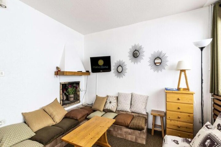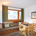 High above the bustling heart of Plagne Centre, this charming apartment offers a front-row seat to the alpine slopes, with breathtaking views from its southwest-facing balcony. Imagine waking up to the crisp mountain air and the sight of skiers carving their way down the pristine runs, all from the comfort of your own private retreat. Positioned on the 9th floor (accessible via elevator), this residence combines convenience with the serenity of elevated living, making it the perfect base for your next adventure in the French Alps. \n\nInside, the apartment is thoughtfully designed to accommodate up to six guests, offering a cozy yet functional layout. The living room features a comfortable double sofa bed and a TV, while the divisible dining area includes an additional single sofa bed. The bedroom is equipped with two single bunk beds and a single bed, ensuring flexible sleeping arrangements for families or groups. A fully equipped kitchen with ceramic hobs, an oven, refrigerator, and dishwasher makes meal preparation a breeze, while the bathroom with a bathtub and separate WC adds to the comfort. The combination of carpeted and tiled flooring creates a warm and inviting atmosphere, perfect for unwinding after a day on the slopes. \n\nSituated at the foot of the slopes, the residence offers direct access to the ski lifts and a convenient shopping arcade, putting everything you need right at your fingertips. Whether you’re picking up ski passes, grabbing a quick bite, or exploring the vibrant resort atmosphere, you’ll find it all just steps away. The ski locker ensures hassle-free storage, making your transition from apartment to piste seamless. \n\nThis apartment is more than just a place to stay; it’s a gateway to unforgettable alpine experiences. Whether you’re here to ski, hike, or simply soak in the stunning views, La Meije in Plagne Centre promises a holiday filled with comfort, adventure, and memories to last a lifetime.