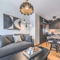 This spacious apartment in Plan Peisey offers a comfortable and authentic mountain retreat for up to eight guests. Located in the heart of the Paradiski ski area and near the Vanoise National Park, it provides the perfect base for year-round adventures. The bright living room features a cozy seating area, a flat-screen TV, and a double sofa bed, ideal for relaxing after a day outdoors. The fully equipped open kitchen includes a ceramic hob, microwave, coffee machine, toaster, dishwasher, and all the essentials for a home-cooked meal. Guests can also enjoy the convenience of a washing machine, tumble dryer, cot, and high chair, making it a great choice for families.