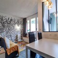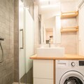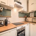 The apartment features a fully equipped kitchen with an induction hob, dishwasher, oven, and refrigerator, ideal for preparing meals at your convenience. The bathroom includes a washing machine, and there is a separate WC for added privacy. While Wi-Fi is not provided, additional services like end-of-stay cleaning, bed linen, and bathroom linen can be reserved in advance to enhance your stay.