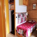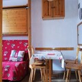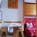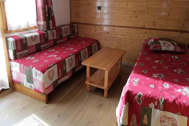 This cozy studio apartment offers a warm and inviting atmosphere with paneled walls and modern furnishings. It features a divisible living space with two sofa beds, a double convertible sofa, and a television. The apartment is non-smoking and allows pets with a supplement of €40. It also includes a south-facing balcony with an open view, providing a peaceful spot to unwind. The apartment is located on the ground floor and comes with ski lockers for added convenience.