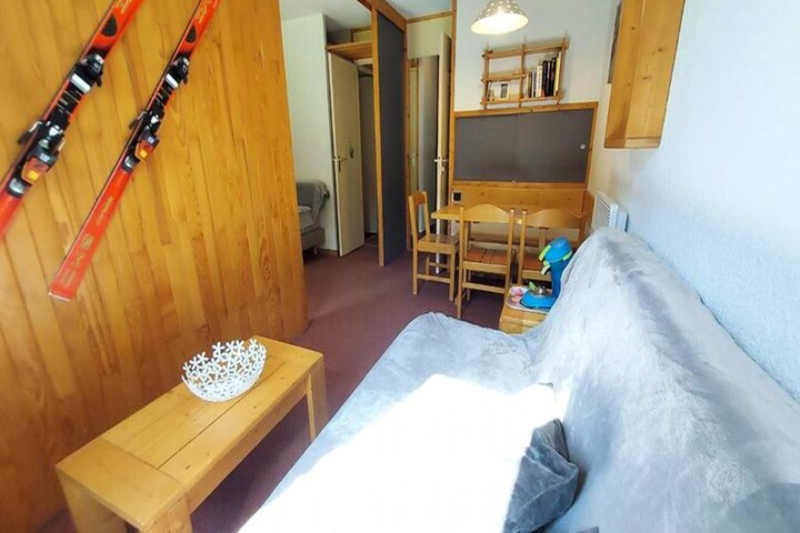 This charming 27m² ground-floor apartment is ideal for up to 4 guests, featuring a divisible living room with two single sofa beds (newly added). Pets are welcome for an additional fee, making it a great choice for those traveling with pets. The apartment is non-smoking and includes a ski locker for convenience. It is perfect for couples or small families looking for a cozy retreat in the heart of the ski resort.