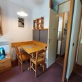 The apartment boasts a fully-equipped, independent kitchen with a dishwasher, oven, and electric hob, ideal for preparing meals at home. The independent bathroom and toilet provide added privacy. The west-facing terrace offers a pleasant view of the slopes, providing a perfect spot to unwind after a day on the mountain.