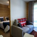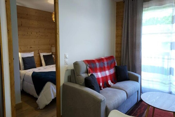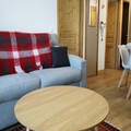 This cozy 36 m² apartment accommodates up to 4 guests with 1 bedroom featuring a double bed (160 x 200 cm) and a comfortable sofa bed in the living room. The apartment is non-smoking and pet-free, with Wi-Fi and underfloor heating. It includes essential services like bed linen, bathroom linen, and end-of-stay cleaning (excluding the kitchen area). One covered underground parking space is included, and the residence offers easy access to the slopes just 50 meters away.