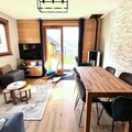 This 76 m² duplex chalet comfortably accommodates up to 8 people with three bedrooms. It features a double bedroom with a TV, a second double bedroom, and a room with two single beds. A sofa bed in the living area offers additional sleeping space. The chalet includes two parking spaces (one covered), bed and bathroom linens, and end-of-stay cleaning (excluding kitchen and dishes). Non-smoking and pet-free, it provides a clean and cozy environment for your stay.