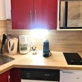 The apartment includes an independent kitchen with a microwave, dishwasher, fridge, electric coffee maker, Nespresso machine, toaster, kettle, and blender, providing all the essentials for a self-catering stay. The bathroom is equipped with a bathtub, and there is a separate toilet for added convenience. A vacuum cleaner and heating ensure a comfortable and well-maintained environment throughout your stay.