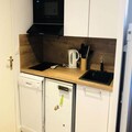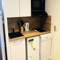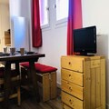 The studio is equipped with an open kitchen, featuring 2 electric hotplates, a fridge, dishwasher, coffee maker, and combination oven for all your cooking needs. A raclette machine is also provided for cozy meals after a day on the slopes. The shower room with WC ensures convenience, while additional amenities like a vacuum cleaner and heating provide a comfortable and well-maintained environment throughout your stay.