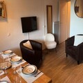 This spacious duplex accommodates up to 8 guests, offering a comfortable stay with 4 rooms and a mezzanine. The first level features a bedroom with 2 bunk beds, a single bed, and a bright living room with a sofa, two armchairs, and a dining area. Upstairs, a mezzanine has a single bed, with two additional bedrooms: one with a double bed (160 cm) and the other, ideal for children, with two single beds. Duvets are provided for all beds, and the apartment includes a TV, baby travel cot, high chair, and board games.