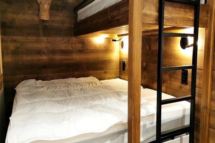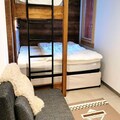 This 3-room apartment accommodates up to 7 people with two bedrooms, each featuring a 160 cm double bed (two singles pushed together). The first bedroom also includes a single bunk bed. The living room has a convertible sofa for additional sleeping arrangements. All beds are provided with duvets. The apartment is non-smoking and pets are not allowed. Linen and cleaning services are available for an extra fee, and tourist tax is not included in the rental price.