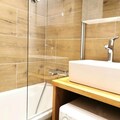 The apartment features an independent kitchen with a fridge, freezer, dishwasher, microwave, oven, and electric hotplates for easy meal prep. A coffee machine with grinder, kettle, toaster, mini chopper, and washing machine add extra comfort. The bathroom, shower room with WC, separate toilet, and a ground-floor terrace provide additional convenience for a relaxing stay.