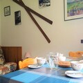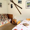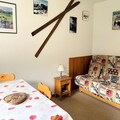 This 2-room apartment can accommodate 4 to 5 people and is ideal for a family or small group. It features a living room with a convertible sofa (140) and a bedroom with bunk beds (80) and a single bed (80). Fleece blankets are provided for all beds. The apartment is non-smoking, and pets are allowed under certain conditions with an additional fee. Linen and cleaning services are available for an extra cost, and tourist tax is not included in the rental price. The apartment also includes a TV and DVD player for entertainment.