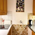 The apartment includes a fully equipped kitchen with a fridge, dishwasher, microwave, traditional oven, and 4 vitro burners. Additional amenities include a coffee maker, kettle, blender, toaster, and a Bosch vacuum cleaner. There is also a bathroom with a separate toilet and a balcony, offering additional space for relaxation after a day on the slopes.