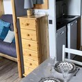 This cozy studio is designed to accommodate 3 to 4 guests, offering a versatile living space with a single bed and a pull-out bed on one side, and a convertible sofa on the dining side. All beds are equipped with duvets for a comfortable night’s sleep. The apartment is non-smoking, and linen and cleaning services can be arranged for an additional fee. The property is not pet-friendly, ensuring a quiet and relaxing stay for all guests.