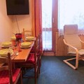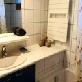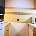 The apartment is equipped with a fully functional kitchenette, including a Fagor refrigerator, Whirlpool dishwasher, microwave, and Brandt oven and 3-burner hob. Additional amenities include a coffee maker, kettle, toaster, and a blender for easy meal preparation. The bathroom is separate from the toilet, and the apartment is also equipped with an iron, a vacuum cleaner, and heating to ensure a comfortable stay year-round.