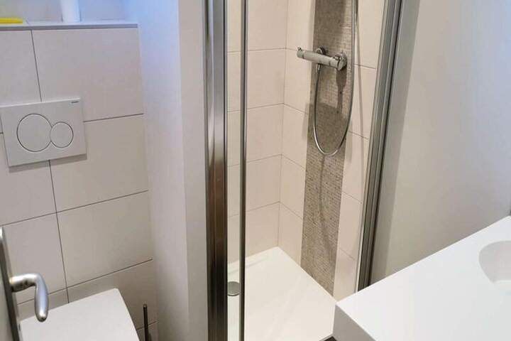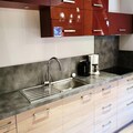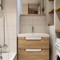 The apartment is equipped with a fully functional kitchen, including a Whirlpool refrigerator and freezer, Vedette Atoll dishwasher, and 3-burner induction hobs. Additional amenities include an LG microwave, Bosch oven, electric coffee maker, kettle, toaster, and blender. For your convenience, there’s also an Electrolux washing machine and a Bosch vacuum cleaner. The apartment has two bathrooms (one with a bathtub and another with a shower) and two separate toilets. Heating is provided for comfort throughout your stay.