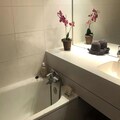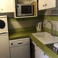The apartment is well-equipped with modern amenities, including a Whirlpool fridge freezer, Bosch dishwasher, and washing machine. The kitchen comes with 4 electric hotplates, a microwave combo, coffee maker, kettle, toaster, and all essential utensils. There are two bathrooms: one with a bathtub and one with a shower and combined toilet. Heating is provided for year-round comfort.