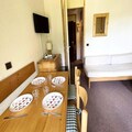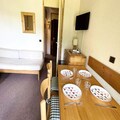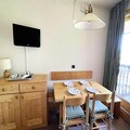 The apartment is equipped with a kitchenette, making meal preparation convenient. It also includes a shower room, a separate toilet, and a balcony to enjoy the views. In the kitchen, you will find a Bosch dishwasher, Whirlpool fridge, microwave, mini oven, 2 electric hotplates, and other appliances like a kettle, toaster, and coffee maker. A raclette machine for 8 people adds a touch of fun for family or group meals. The apartment also includes a vacuum cleaner and heating for your comfort.