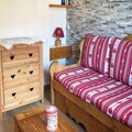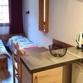 This cozy studio apartment is designed to accommodate up to 4 people, with a divisible living area featuring two single beds and a sofa bed with a pull-out bed. All beds are equipped with duvets for added comfort. The apartment is pet-friendly under specific conditions, with a supplement, and is non-smoking. A TV is available for entertainment. The apartment is perfect for small families or groups looking for a convenient, well-equipped base for their stay.
