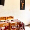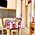 This cozy divisible studio apartment is designed to accommodate up to 4 people. The living area features 4 benches with pull-out beds, all equipped with duvets for added comfort. The apartment is non-smoking and does not allow pets. It offers a TV for entertainment and is ideal for small families or groups. Linen and cleaning are available upon request for an additional fee, and the tourist tax is not included in the rental price.