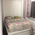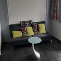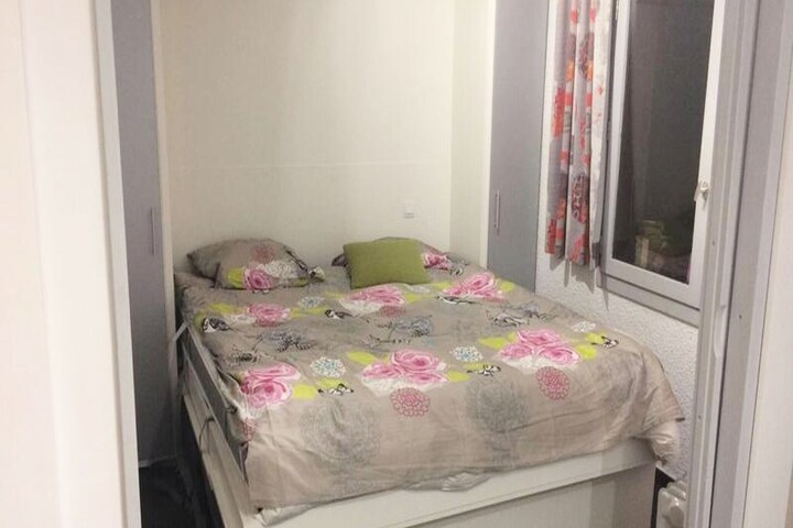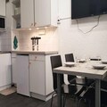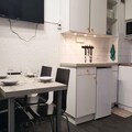 This cozy 2-room apartment is designed to accommodate up to 4 people, making it ideal for families or small groups. The living room features a movable partition and a double bed, while the bedroom is furnished with a set of bunk beds (a single bed on top and a double bed below). All beds are equipped with duvets for a restful sleep. The apartment is non-smoking, and pets are allowed under specific conditions for an additional fee. Linen and cleaning services are not included but can be arranged for an extra charge.
