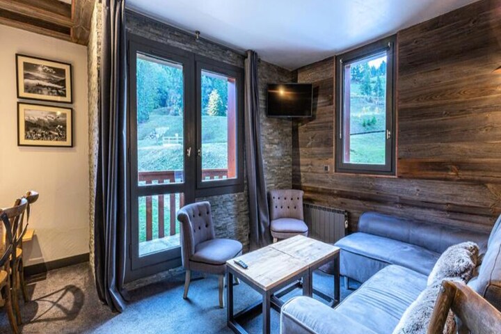Perched in the picturesque Crève Coeur hamlet of Valmorel, this charming 4-room apartment offers an unbeatable location for ski enthusiasts and nature lovers alike. With the slopes just outside your door and the Télèbourg ski lift a mere 80 meters away, your alpine adventures begin the moment you step outside. Imagine sipping your morning coffee on the southeast-facing balcony, soaking in the breathtaking views of the snowy pistes and surrounding mountain peaks. This cozy retreat is perfect for families or groups seeking a comfortable and convenient base in the heart of the French Alps. \n\nInside, the apartment is thoughtfully designed to accommodate up to eight guests. The open-plan kitchen is fully equipped with a dishwasher, electric hob, microwave, oven, and refrigerator, making it easy to prepare hearty meals after a day on the slopes. The living room, complete with a dining area and television, provides a welcoming space to unwind. Upstairs, you'll find a bunk bed and two single beds in one room, a double bed in the attic bedroom, and a single bed with a trundle in another. The apartment also features a bathroom, a separate toilet, and a shower room with an additional toilet, ensuring ample facilities for all guests. \n\nThe Crève Coeur hamlet is ideally situated, offering easy access to essential shops such as a bakery, sports store, and convenience store. The ESF ski school is just 350 meters away, accessible via the Télèbourg ski lift, making it a great choice for families with children or beginners looking to refine their skills. In addition, paid parking is conveniently located in front of the residence, and the nearby La Lauzière Dessous residence provides ski lockers for added convenience. \n\nWhether you’re here for the thrill of skiing, the charm of Valmorel’s alpine village, or simply to relax and take in the stunning scenery, this apartment is your gateway to unforgettable memories in the French Alps. Book your stay and experience the magic of Crève Coeur for yourself.