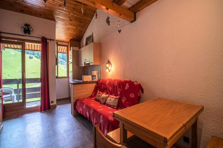High above the picturesque slopes of Valmorel, this charming 44m² apartment on the top floor of the 'Le Pierrafort' residence offers a serene alpine retreat with breathtaking views of the surrounding mountains. The south-facing balcony invites you to soak in the beauty of the slopes while enjoying the crisp mountain air. Perfectly situated for ski enthusiasts, the residence provides direct access to the Pierrafort cable car and is less than 100 meters from the Télèbourg ski lift, ensuring seamless access to the snowy adventures of the French Alps. \n\nInside, the apartment is thoughtfully designed to combine comfort and functionality. The spacious living room features a cozy double sofa bed, while the bedroom and mezzanine offer flexible sleeping arrangements with two single beds each, making it ideal for families or groups of up to six. A modern open-plan kitchen, equipped with a ceramic hob, dishwasher, oven, microwave, and a large refrigerator, allows you to prepare hearty meals after a day on the slopes. The mezzanine also includes a lounge area, perfect for unwinding. The apartment boasts new bedding for added comfort, a separate bathroom, and a toilet. Please note that Wi-Fi is not included, and the apartment is non-smoking. Pets are welcome for an additional fee.\n\nThe Crève Coeur hamlet, where the residence is located, offers a quiet and convenient base. Basic shops such as a bakery, mini-market, and sports store are within walking distance, and the Télèbourg cable car connects you to the resort center and the Mottet hamlet. In summer, the area transforms into a haven for outdoor enthusiasts, with free parking nearby and easy access to hiking trails and playgrounds for children. \n\nWhether you're seeking thrilling ski adventures in winter or tranquil mountain escapes in summer, this apartment promises a memorable stay in the heart of Valmorel's alpine charm.