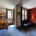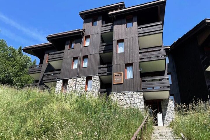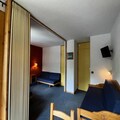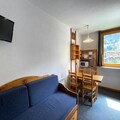 High above the charming Valmorel resort, this cozy studio apartment offers a serene alpine escape with breathtaking views of the surrounding mountains and village below. Imagine sipping your morning coffee on the southeast-facing balcony as the sun rises over the peaks, preparing for a day of adventure in the snow or on scenic trails. This tranquil retreat is perfect for couples or small families seeking comfort and convenience in the heart of the French Alps. \n\nThe apartment spans 27 square meters and is thoughtfully designed to maximize space and functionality. The entrance hall features a well-equipped kitchen with modern appliances including a stovetop, dishwasher, microwave, and refrigerator, making it easy to prepare hearty meals after a day outdoors. The dining area comfortably seats four, while the living room offers flexible sleeping arrangements with a trundle bed and two single sofa beds. A movable partition ensures privacy, and the bathroom with a separate toilet adds practicality to your stay. While Wi-Fi is not included, the panoramic views and cozy atmosphere provide the perfect setting to disconnect and unwind. \n\nLocated in the peaceful La Forêt neighborhood, the residence is just 100 meters from the slopes and ski lifts, ensuring effortless access to Valmorel’s renowned skiing terrain. A short 10-minute walk via a pedestrian path leads to the resort center, where you’ll find shops, restaurants, and a kindergarten for young children. Whether you’re exploring the slopes in winter or hiking the trails in summer, this apartment serves as an ideal base for your alpine adventures. \n\nWith its blend of comfort, convenience, and stunning scenery, this studio invites you to experience the magic of the French Alps in every season.