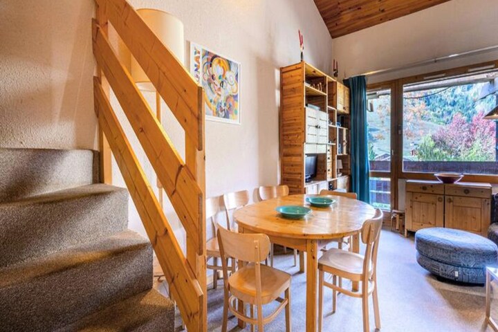 Perched in the serene Crève Coeur district of Valmorel, this charming 4-room duplex apartment offers a perfect alpine retreat for families and groups. With ski slopes just 20 meters away and the nearest ski lifts within a short 200-meter stroll, this property is a haven for winter sports enthusiasts. The southwest-facing balcony provides breathtaking panoramic views, inviting you to soak in the beauty of the surrounding mountains after a day of adventure. \n\nInside, the apartment is thoughtfully designed for comfort and convenience. The separate kitchen is fully equipped with an electric hob, dishwasher, oven, microwave, and refrigerator, making it easy to prepare hearty meals. The living room features a cozy corner sofa and television, creating a warm space to unwind. The sleeping arrangements include a sofa bed in Bedroom 1, a double bed in Bedroom 2, and two sets of bunk beds in Bedroom 3, comfortably accommodating up to eight guests. Additional amenities include a bathroom, a shower room, and two separate toilets. A ski locker is available for your gear, and pets are welcome with a small supplement.\n\nThe Crève Coeur district is ideally located, offering easy access to essential shops such as a bakery, mini-market, and sports store. The nearby Télèbourg cable car connects you to the resort center and the charming hamlet of Mottet, ensuring you’re never far from the action. For beginners or children, the Pierrafort gondola provides a gentle introduction to the slopes, while advanced skiers can head directly to the Côte Soleil ski lift.\n\nWhether you’re here for the thrill of skiing or the tranquility of the mountains, this duplex apartment combines convenience, comfort, and stunning views to create an unforgettable alpine experience. Book your stay and immerse yourself in the magic of Valmorel.
