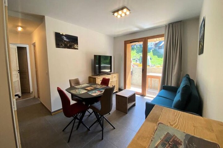 High above the picturesque Tarentaise Valley, this brand-new apartment in Le Roc-La Charmette Residence offers a modern alpine retreat for travelers seeking comfort and convenience. With sleek interiors and thoughtful design, this two-room cabin apartment welcomes up to six guests, making it ideal for families or small groups. The serene surroundings and proximity to world-class ski slopes create an unforgettable mountain escape, whether you're visiting for winter adventures or summer explorations. The nearby free bus stop ensures easy access to the region's attractions, while the peaceful ambiance of the residence invites you to relax and recharge.
