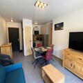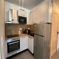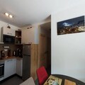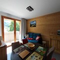 Inside, the apartment boasts a fully equipped living room with a 160cm Rapido sofa and television, perfect for cozy evenings after a day outdoors. The open kitchen features top-of-the-line appliances, including a dishwasher, conventional oven, microwave, induction hob, refrigerator, and freezer, making meal preparation a breeze. The cabin bedroom offers charming bunk beds and access to the balcony, while the master bedroom includes a luxurious 160cm bed, en-suite shower room with toilet, and a washing machine. Step onto the spacious 7.8m² balcony, where a table and chairs await for alfresco dining or simply soaking in the crisp alpine air.