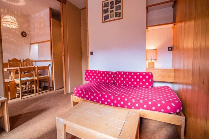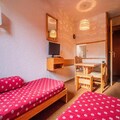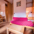 Inside, the 27m² studio is thoughtfully designed to accommodate up to four guests. The living area features four single sofa beds, providing flexible sleeping arrangements for families or friends. A separate kitchen equipped with a dishwasher and electric hob makes meal preparation a breeze, while the bathroom and toilet offer privacy and practicality. Although Wi-Fi is not included, the apartment’s welcoming ambiance and proximity to the slopes more than make up for it. Additional amenities include a ski locker for your gear and the option to bring pets along for a small fee.