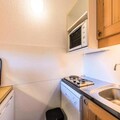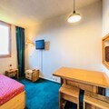 The studio features a living area with a fully equipped kitchen, a bathroom, and a separate WC. It comfortably accommodates up to four people, making it perfect for small families or groups. The apartment is part of a well-maintained residence and is designed with comfort in mind, offering essential services such as a maintenance kit, bed linen, and a fully equipped kitchen. Guests also have access to various on-site services for an additional fee, including Wi-Fi, daily housekeeping, and baby kits (subject to availability).