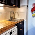 High above the serene hamlet of La Forêt, this charming duplex apartment offers a warm and inviting retreat for up to eight guests. The perfect blend of alpine tradition and modern comfort, it is a haven for families and groups seeking a memorable mountain getaway. Whether you're here to carve through pristine slopes or simply breathe in the crisp mountain air, this property provides an ideal base for your adventures in the French Alps. With breathtaking views and a location just minutes from key facilities, you'll feel right at home in this peaceful corner of the Tarentaise Valley. \n\nInside, the apartment is thoughtfully designed to cater to your every need. The spacious living room features a cozy sofa and pull-out bed, while the fully equipped kitchen invites you to prepare hearty meals after a day on the slopes. The sleeping arrangements are versatile, with a downstairs bedroom boasting a double bed, a mezzanine with three single beds, and an upstairs bedroom with another double bed. Modern amenities such as a Thomson TV, Blu-ray player, dishwasher, washer-dryer combo, and espresso machine ensure a comfortable stay. The balcony on the upper floor offers a tranquil spot to unwind, with views that capture the essence of alpine living.\n\nConveniently located, the apartment is just a short walk from the ESF ski school and Piou Piou children's ski club, making it ideal for families. Shops are only five minutes away, while the slopes are a mere two-minute stroll from your door. In addition, the area offers a range of activities throughout the year, from skiing and snowboarding in winter to hiking and cycling in summer. Pets are welcome under certain conditions, and additional services such as linen and cleaning can be arranged for a fee.\n\nWhether you're seeking thrilling outdoor adventures or a peaceful retreat in the mountains, this apartment in La Forêt promises an unforgettable experience. Immerse yourself in the beauty of the French Alps and create lasting memories in this cozy and well-appointed home.