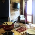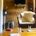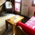 The apartment comfortably accommodates 4 to 6 guests, featuring a bright open-plan kitchen and living area complete with a crackling fireplace to unwind after a day on the slopes. The bedroom is equipped with two double bunk beds, while the living room offers a sofa bed for additional sleeping space. A fully equipped kitchen includes everything from a microwave and oven to raclette and fondue sets, ensuring cozy evenings filled with delicious meals. Modern conveniences like a TV, DVD player, and high-speed WiFi make your stay even more enjoyable.