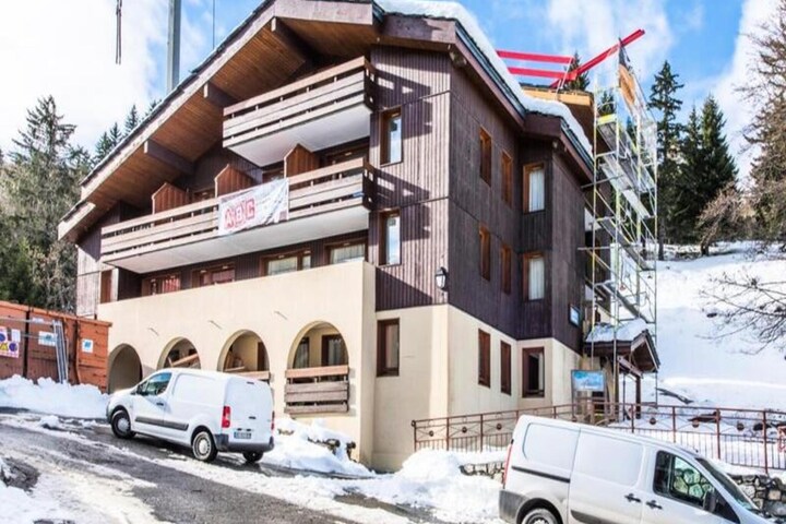 Nestled in the tranquil La Forêt district of Savoie, the property is surrounded by stunning landscapes, blending green nature with dramatic mountain peaks. Valmorel, known for its charm, offers vacation rentals in buildings inspired by traditional Savoyard chalets. The residence is ideally located near key amenities, including the nearest shops, which are only 5 minutes away on foot. The six residences within the Quartier La Forêt are all situated close to each other, making it easy for guests to navigate the area. The proximity to the ski lifts, just a 3-5 minute walk, and easy access to nearby attractions such as a pine forest, ensure a relaxing stay with various activities and services nearby.