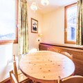 Property along with its ideal location in the heart of the picturesque Valmorel village offers a comfortable and family-friendly accommodation option. The apartment spans approximately 35 m² and can host up to four people. It features a cozy living room equipped with two sofa beds, one of which has a pull-out bed, providing ample space for relaxation. A dining area with a round table and six chairs allows guests to enjoy meals comfortably. The apartment also includes a private bedroom with two single beds, a bathroom with a bathtub, and a separate WC. Guests can also enjoy a small balcony with a chair, perfect for taking in the surrounding views. The apartment's strategic location, just 50 meters from the slopes and a 5-minute walk from the pedestrian street, ensures convenience for those looking to explore the resort.