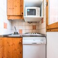 The apartment is well-equipped for a self-catered stay, with a kitchen area open to the living room, allowing guests to prepare their own meals. Additional amenities include a ski locker, storage space, and a TV with a decoder. The apartment is well-maintained and offers essential services for a comfortable stay, such as optional wifi access (subject to availability), a baby kit (subject to availability), and additional cleaning services.